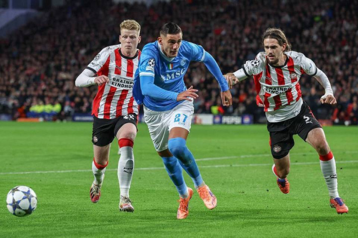 第18分钟,萨伊瓦里越位进球被吹。第31分钟,逃过一劫的那不勒斯由斯皮纳佐拉传中助攻麦克托米奈头槌破僵。不过仅仅4分钟,埃因霍温便依靠布翁焦尔诺的乌龙球扳平比分。第38分钟,萨伊瓦里单刀破门,为埃因霍温反超比分。